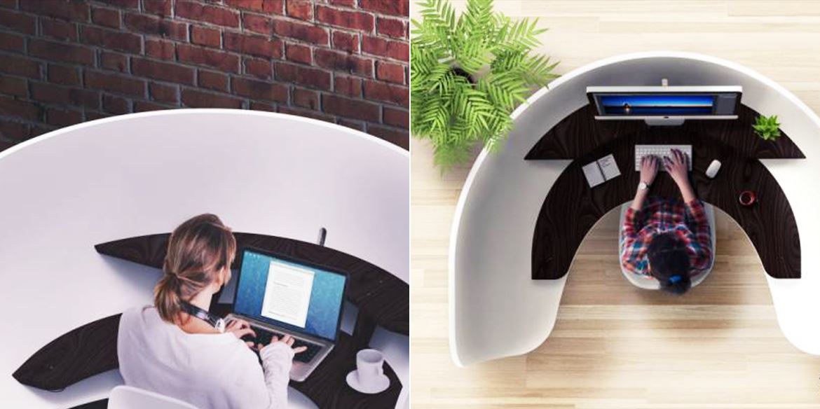 事實(shí)證明,公共辦公場所(圖書館、咖啡廳等)并不是那么的完美無缺。盡管它美觀、大方、敞亮,但辦公時(shí)難免會(huì)因?yàn)橥饨缫蛩兀ㄩ_門、他人電話等)而分心。于是,設(shè)計(jì)師們?cè)O(shè)想:采用何種改進(jìn)能夠幫助工作人員在公共場所專心辦公呢?可能你會(huì)想,他們一定會(huì)設(shè)計(jì)出一些非常高科技的產(chǎn)品,用高科技來屏蔽外界干擾,以達(dá)到預(yù)期的效果。然而事實(shí)并非如此,他們的做法很簡單,僅僅是通過縮減桌面面積來減少放置雜物的空間,同時(shí)加高桌子周圍的“墻”高度來減少外界對(duì)于用戶視覺的干擾。