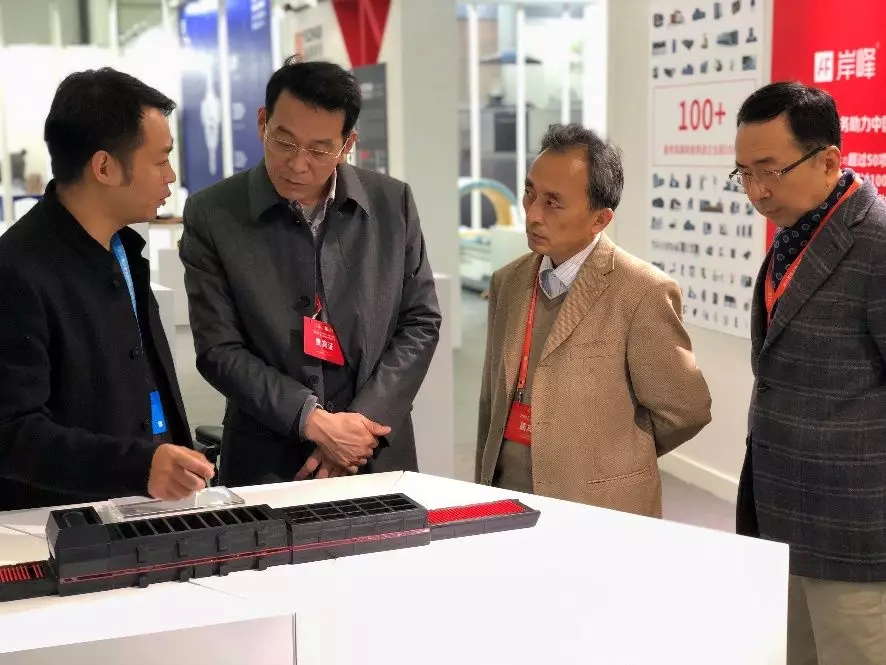 上海市經(jīng)濟(jì)和信息化委員會巡視員、上海市文化創(chuàng)意產(chǎn)業(yè)領(lǐng)導(dǎo)小組辦公室副主任陳躍華和中國工業(yè)設(shè)計(jì)研究院董事長李云虎一行來岸峰展臺進(jìn)行了現(xiàn)場交流指導(dǎo),聽取岸峰總經(jīng)理謝春雷對公司發(fā)展及案例介紹